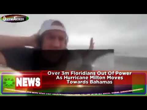 Over 3m Floridians Out Of Power As Hurricane Milton Moves Towards Bahamas https://osazuwaakonedo.news/over-3m-floridians-out-of-power-as-hurricane-milton-moves-towards-bahamas/10/10/2024/ #Breaking News #Bahamas #Biden #Florida #Joe #MILTON #NOAA #USA ©October 10th, 2024 ®October 11, 2024 6:58 pm Authority has confirmed that Hurricane Milton that cut off estimated three million people from electricity in Florida in the United States of America, USA since Wednesday is still moving eastward at a low pace in the state on Thursday and the Hurricane which is now considered as Category One tropical storm is expected to move towards Northern Bahamas tonight #OsazuwaAkonedo