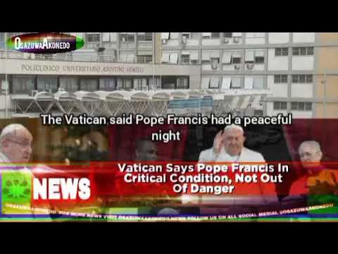 Vatican Says Pope Francis In Critical Condition, Not Out Of Danger https://osazuwaakonedo.news/vatican-says-pope-francis-in-critical-condition-not-out-of-danger/22/02/2025/ #Breaking News #Catholic #Francis #Pope #Vatican ©February 22nd, 2025 ®February 22, 2025 9:46 pm Head of the Catholic Church, Pope Francis is not out of danger and his health worsened on Saturday evening, says Vatican. #OsazuwaAkonedo
